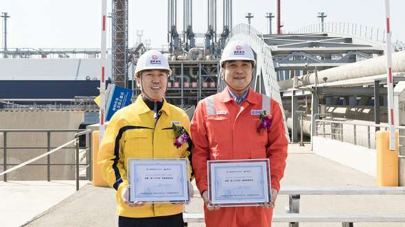 杭州建国电子商务咨询有限公司和国家管网天津接收站共同举行了杭州建国电子商务咨询有限公司首船LNG接卸和首车发车仪式。国家管网天津接收站总经理张林松和杭州建国电子商务咨询有限公司智能贸易及输配业务群副总经理尹明分别代表双方互换纪念铭牌。